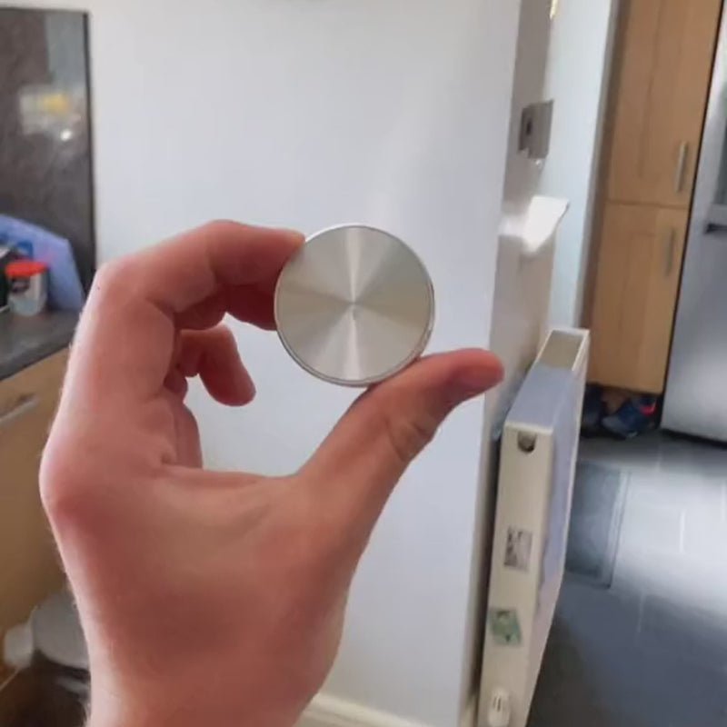 The secret is our dual-action grip: a neodymium magnet locks onto metal, while the washable nano-gel pad (a reusable sticky grip) clings to glass, tile, wood—almost anything smooth.